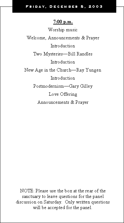 discernment conference was held in Honolulu, HI on 12/5 and 12/6/03. The